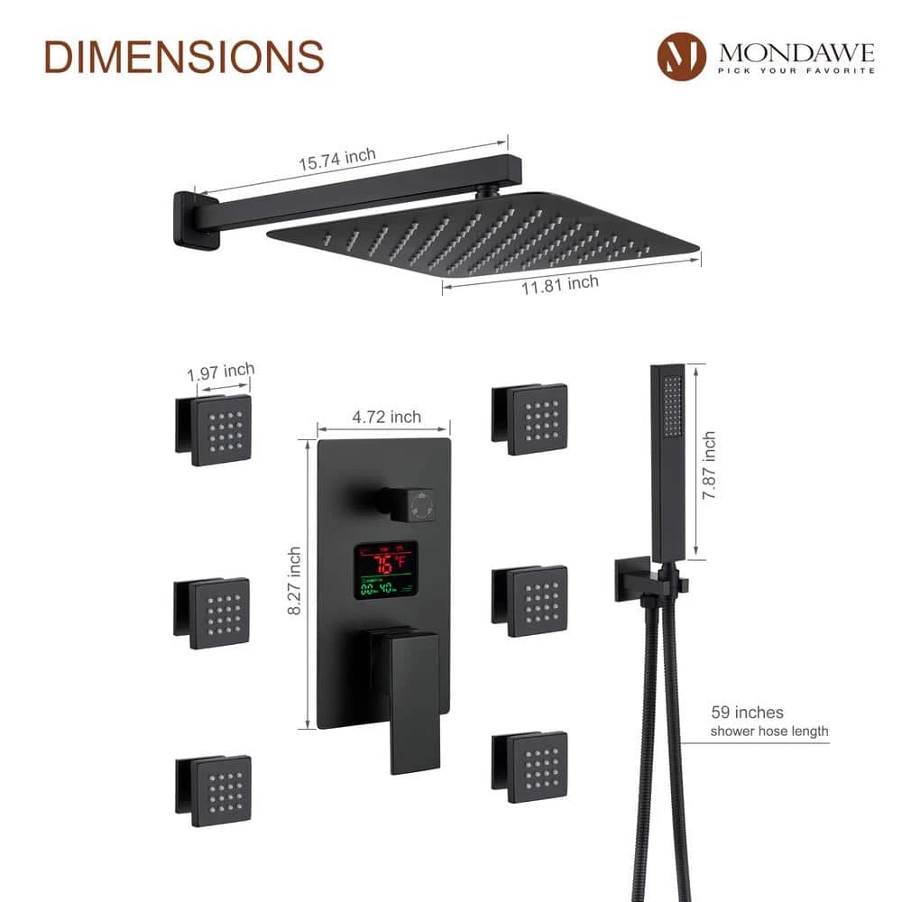 Wash the day away with our 3-function shower system. This thermostatic shower system is made of solid brass and stainless steel, with a hand shower and 6 body jets, offering you a full-body shower experience. The digital display is powered by water flow, which can help you find the most comfortable temperature. Our shower faucet system always gives an amazing spray of water and adds the perfect touch to complete the look of your bathroom.
