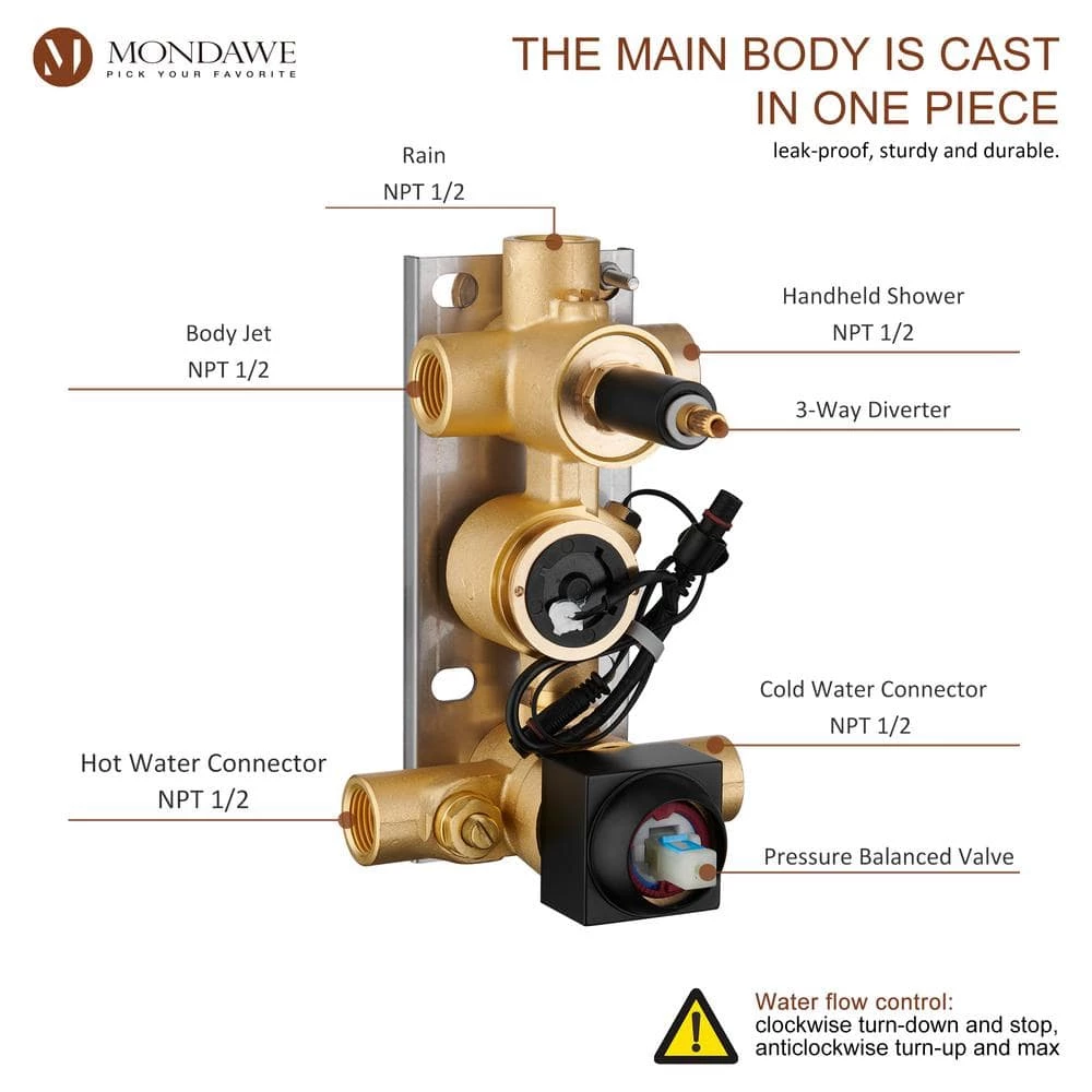 - Anti-scald: thermostatic copper valve with cUPC certificated offers water at the desired temperature and keeps it constant without fluctuations to prevent scalding