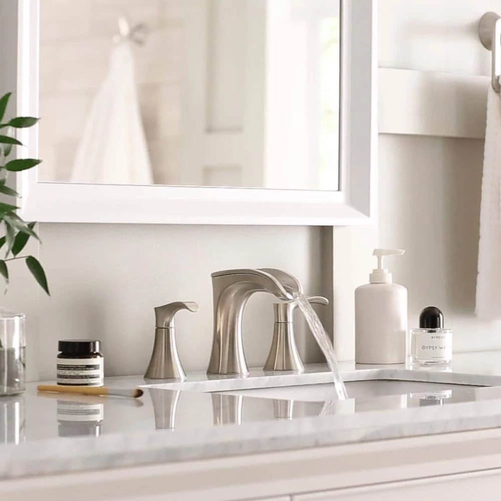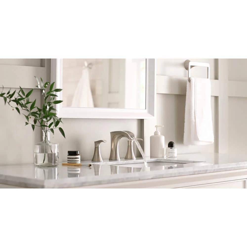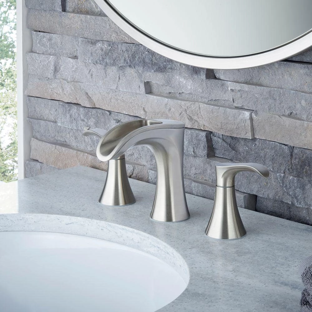 Create a distinctive statement of style with Brea, a versatile widespread 2-handle bathroom faucet with an elegant trough spout. Available in Brushed Nickel and Tuscan Bronze, Brea complements a variety of bathroom settings. This WaterSense certified faucet is designed for utmost efficiency with ceramic disc valves and a never-leak guarantee. Brea includes the innovative Push and Seal drain for ease of use and a tight seal every time.