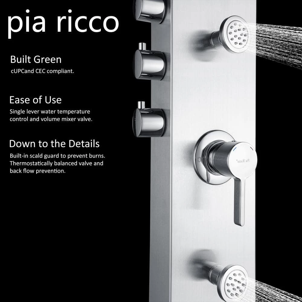 - All-in-one shower tower system designed for wall mount installation without difficult plumbing or drilling