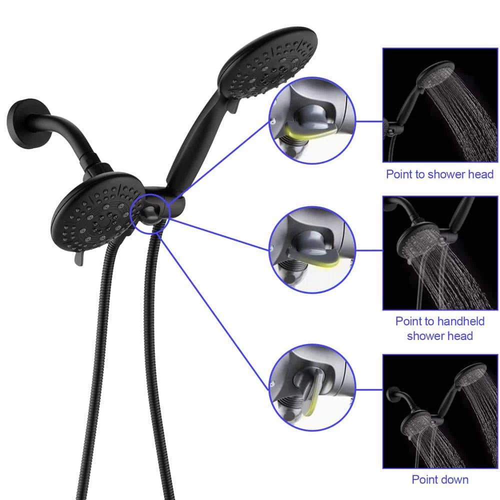 The PROOX 2 in 1 Shower Faucet is made of premium ABS material, the valve is durable brass. This stylish product features a 5 functions shower head and 5 functions hand shower. The Shower Combo Set comes with 3-Way Diverter Valve, that switches freely between overhead shower combo and handheld shower head.
