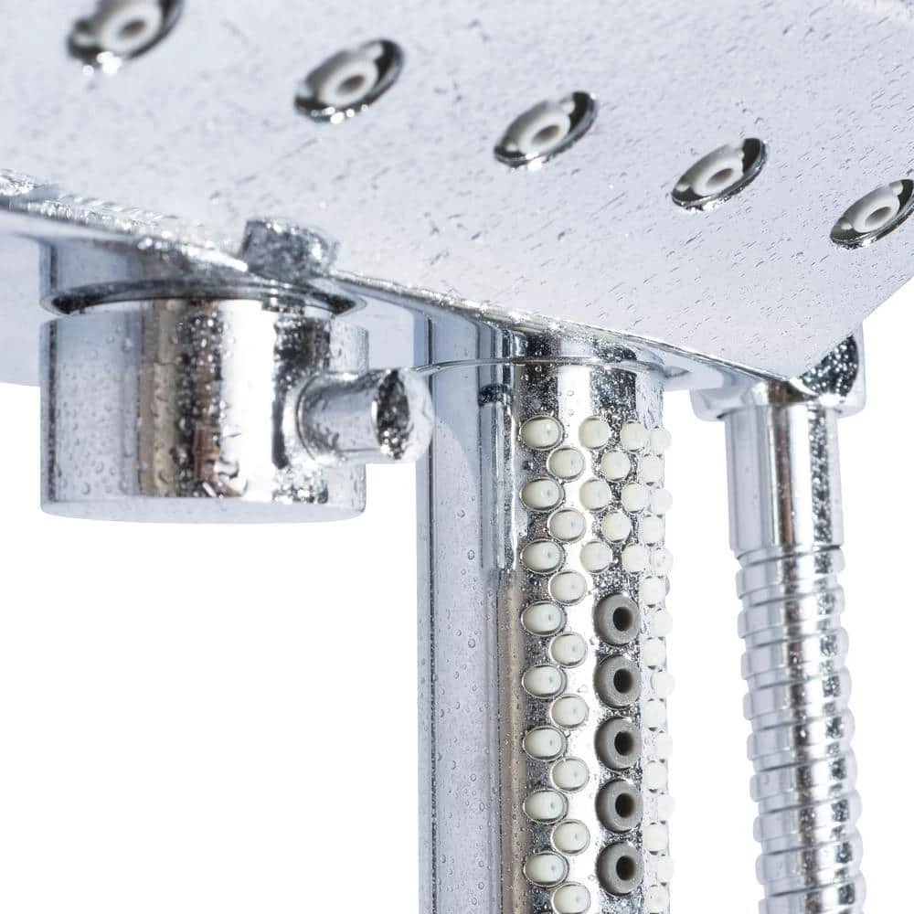 - Oversized showerhead with soft tips to clear mineral buildup for long lasting performance