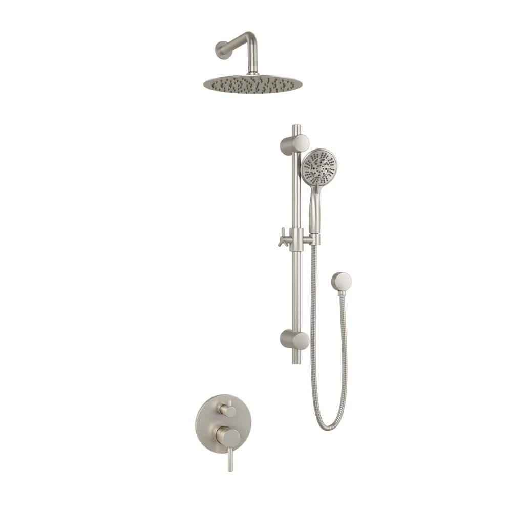 The Refuge Combo Shower System is a combo unit that comes in four finishes to match any style bathroom. Equipped with an 10 in. rain showerhead, brass shower arm, adjustable slide bar, stainless steel hand shower hose, multi-function hand shower and tru-temp pressure balance mixing valve with Diverter, this combo system completes any remodel adding beauty and style to your bathroom. The Refuge Combo Shower System is the perfect solution for a modern bathroom remodel and designed to enhance your shower experience.