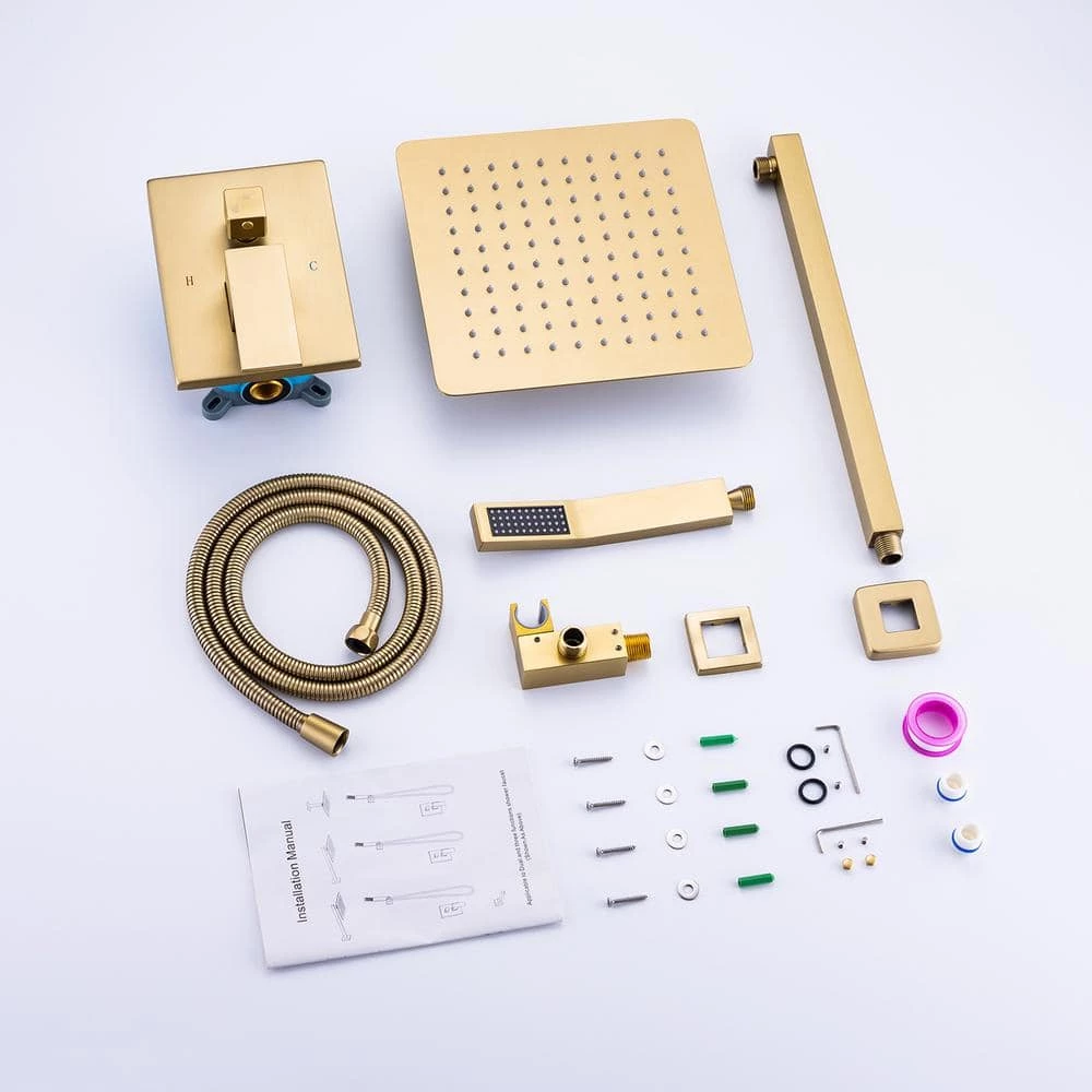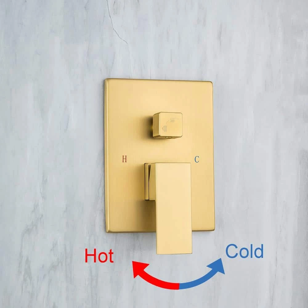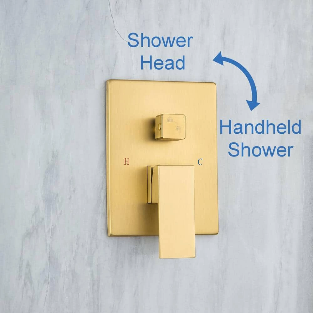 All-in-one diverter, easy to switch different model by 1-knob. 2-spray model handheld shower: all metal handheld shower, cUPC certificated pressure balance: shower system prevent sudden hot water that burns our skin and can even damage the epiderma. Air technology: having a beautifully designed showerhead is not enough for you to have the most comfortable bathroom. Pressure balance valve protect from sudden change. Brushed Gold is elegant in the bathroom.