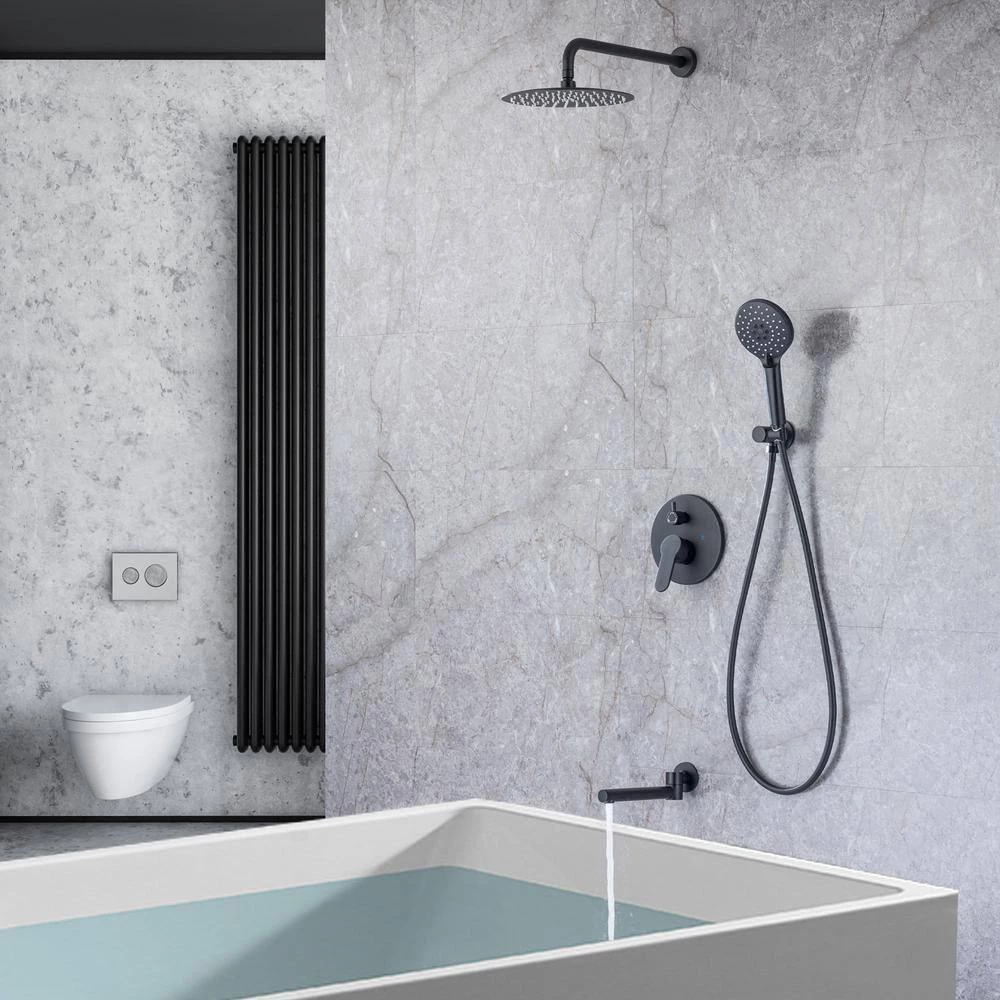 The swivel design which avoid scratch and space-saving. Pressure Balanced Valve with cUPC Certification: The pressure balanced valve protects you from any hurts of sudden water temperature change. The additional shut-off stop would help you adjust water flow and convenient maintenance. Air-in technology offers higher water pressure even at low water pressure, and medical grade nozzles could be self-clean. Also, adjust water direction by the swivel brass ball. 15 in. shower head arm: made of high quality metal, When connecting water pipe. 60 in. stainless steel flexible shower hose could be used for showering adults and kids, or even cleaning your bathtub, bathing your pets. Special design of solid brass shower mixer valve (Pre-embedded): Shower knob on the valve switches the bathing modes; Single handle for easy control of water flow and temperature; Turn to left for hot water and turn to right for the cold water. Easy Installation: Please DIY to install the shower step by step as shown on the attached instruction manual. Also, to ensure the safer and faster installation process, it’s highly recommended to hire the plumber or contractor to install the shower system.