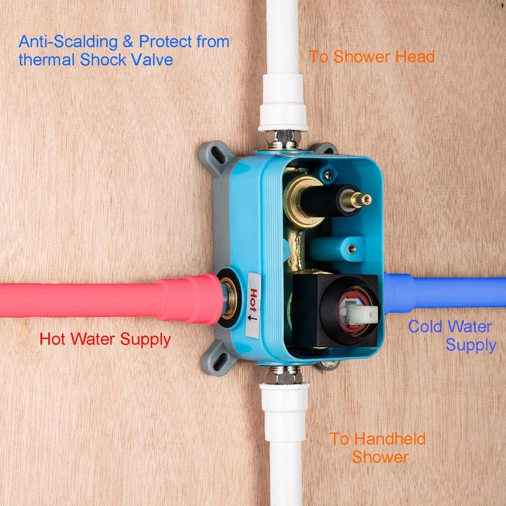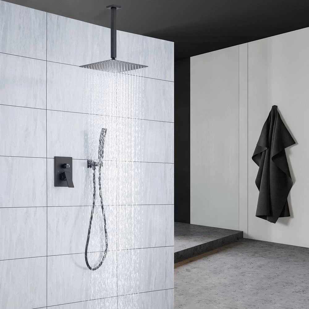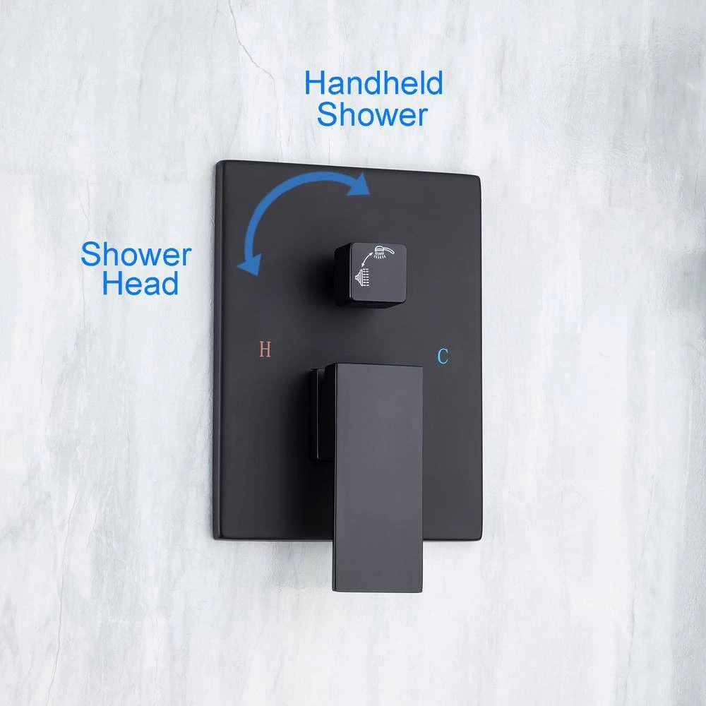 12 in. square shower head, All-in-One diverter, easy to switch different model by 1-knob. 3-spray model handheld shower: All metal handheld shower, cUPC certificated pressure balance: shower system prevents sudden hot water that burns our skin and can even damage the epiderma. Air technology: having a beautifully designed showerhead is not enough for you to have the most comfortable bathroom. Matte Black is elegant in the bathroom.