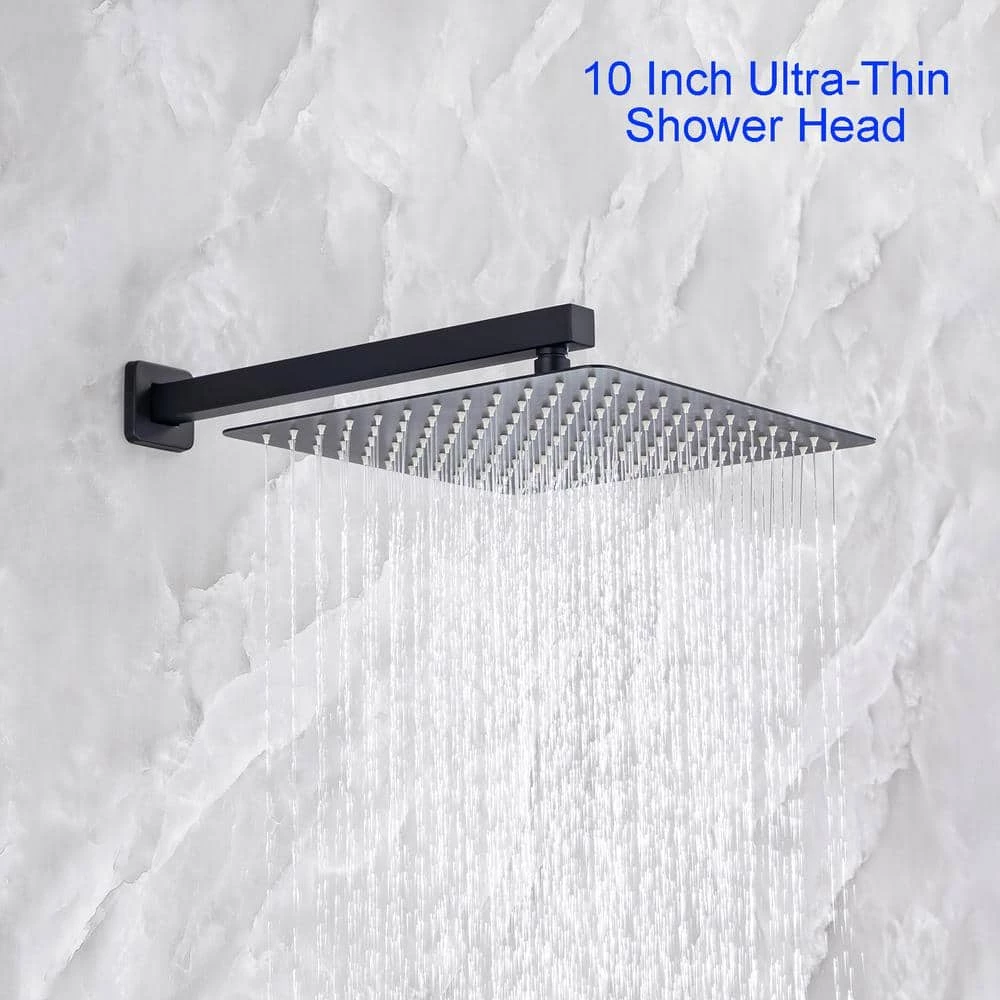 High quality: faucet body is made from sturdy brass, ensuring high quality and longevity, 10 in. extra-large overhead shower is made from SUS 304 stainless-steel appearance style brass handheld shower head, 10 in. 304 stainless-steel rain shower head, solid brass shower mixer valve, 15.7 in. metal shower arm and 59 in. shower hose, concealed installation brass shower bracket holder. Pressure balance valve’s cartridge monitors water pressure balance, helping to protect you from being scalded by sudden changes in hot or cold-water pressure. Good quality plated finish offers a sleek look, ensuring corrosion resistance and durable. Air energy technology offer consistent powerful rain shower even under low water pressure.