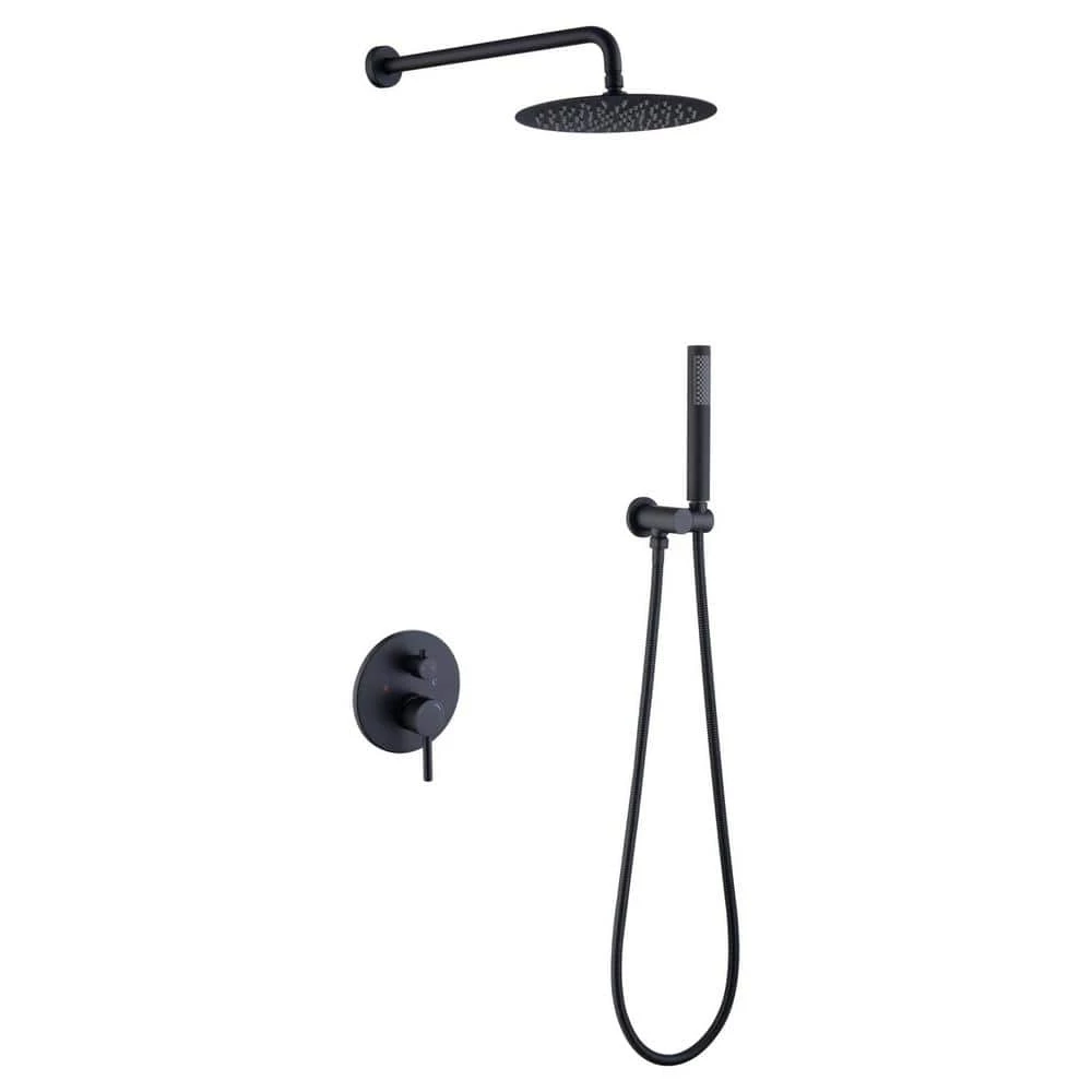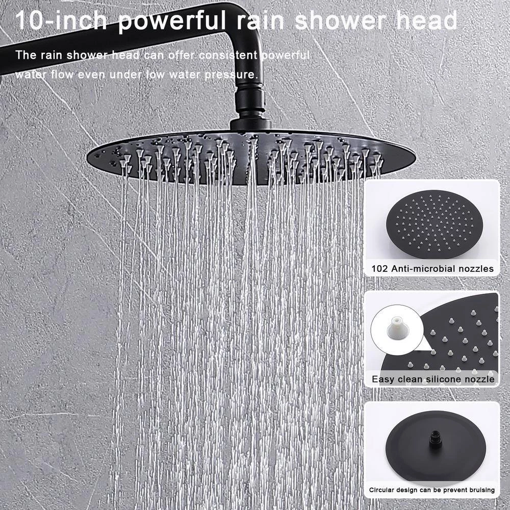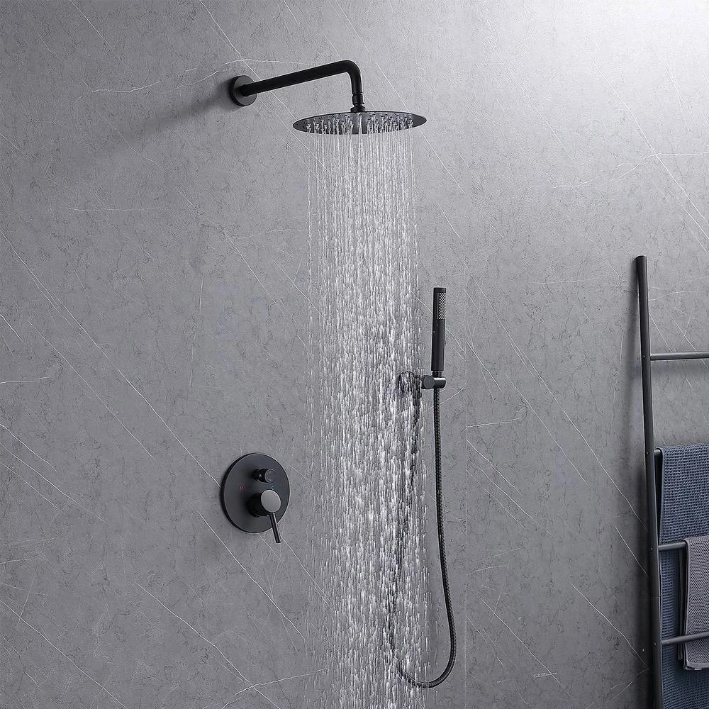 - All hardware included: L style brass handheld shower head, 10 in. 304 stainless steel rain shower head and solid brass shower mixer valve; 16 in. (40 cm) metal shower arm and 59 in. shower hose, concealed installation brass shower bracket holder