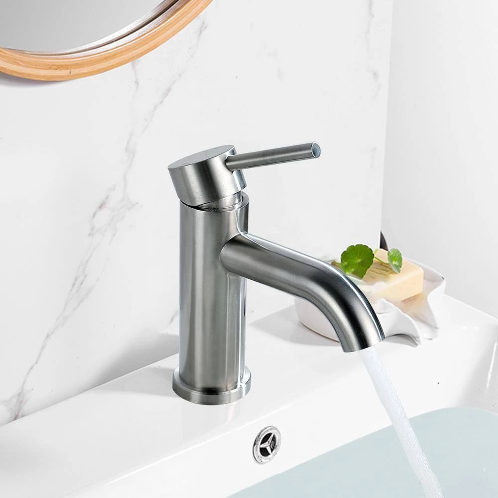 This eye-catching sleek lines design in stunning European style features a clean, simplistic outlook to upgrade your bathroom accessories. Slightly arched spout adds an elegance to glamorize your decorations with its brushed nickel finish, which is not only good looking but also prevents it from getting corrosion and variety of stains. Refresh your room with this detail oriented faucet today for a high quality of life.