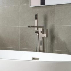 WOODBRIDGE Everette Single-Handle Freestanding Tub Faucet with Hand Shower in Brushed Nickel