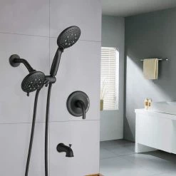 YASINU Single Handle 1-Spray Round Shower Faucet Head In Matte Black (Valve Included)