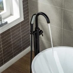 WOODBRIDGE Zurich Single-Handle Freestanding Tub Faucet with Hand Shower in Matte Black