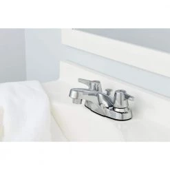 Glacier Bay Aragon 4 in. Centerset 2-Handle Low-Arc Bathroom Faucet with Pop-Up Drain in Chrome