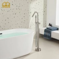 Hlihome Freestanding Single-Handle Bathtub Faucet with Hand Shower in Brushed Nickel