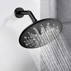 UKISHIRO Single Handle 1-Spray Round High Pressure Shower Faucet in Matte Black (Valve Included)