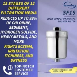 ISPRING 15-Stage Never Clog High Output Universal Shower Filter with Replaceable Cartridge, Chrome