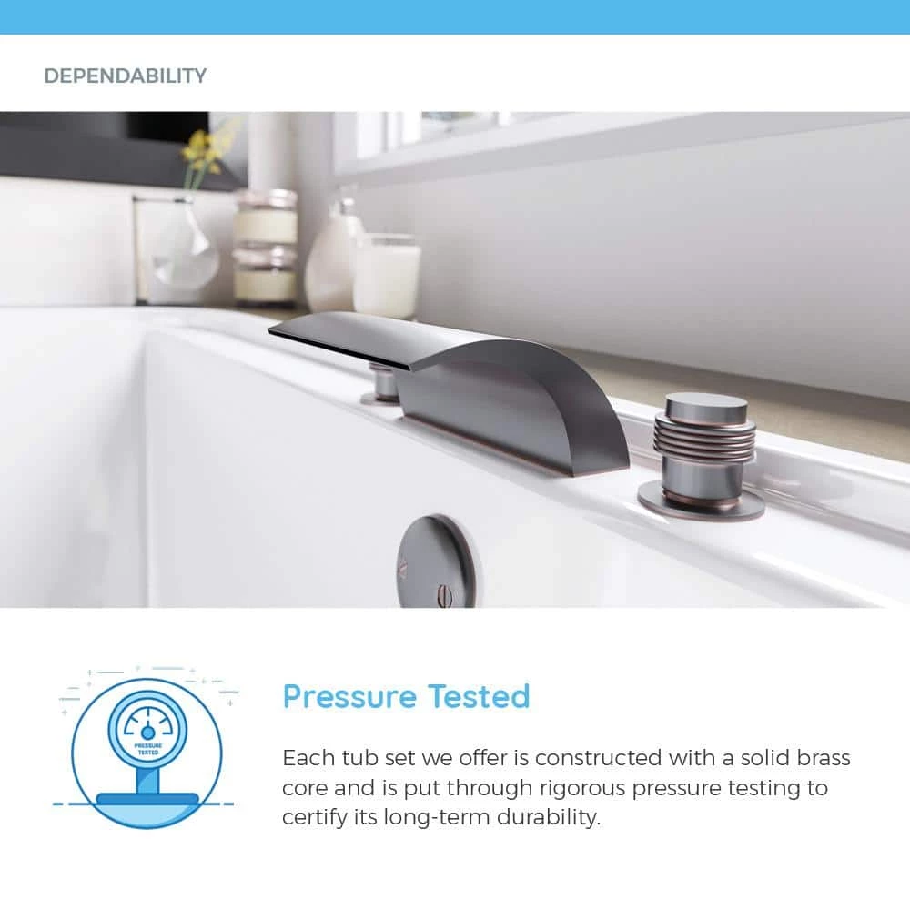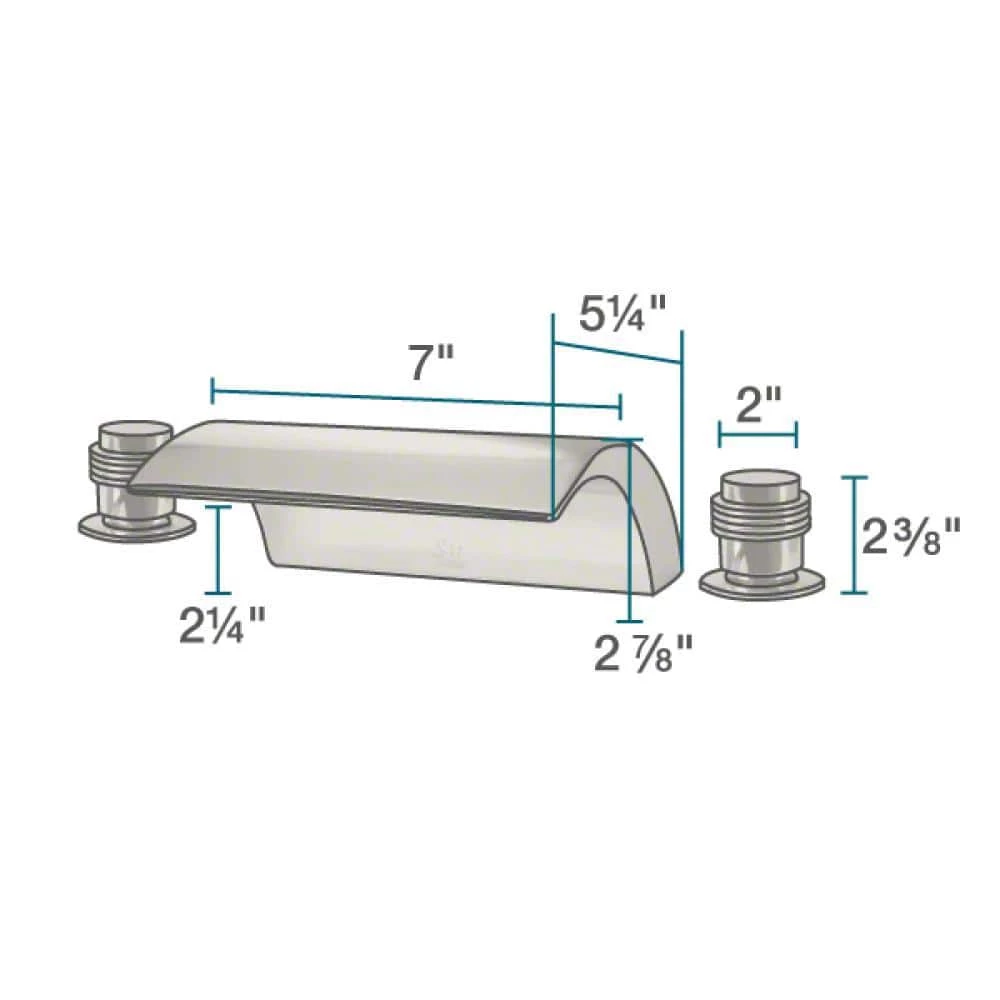 The 719-BN Roman Tub Faucet Set is the ultramodern choice in bathtub fixture designs. Water gently cascades into the tub along the entire seven in. width of this extraordinarily sleek spout. Dual handle controls install on either side and match the faucet’s European styling. The 719-BN presents an attractive bath experience whether installed in the chrome, brushed nickel or antique bronze finish. Solid brass construction assures that this unit will last and our testing proves it. We confidently offer a Limited lifetime warranty. The dimensions for the 719-BN are 7 in. x 5-1/4 in. x 2-7/8 in.