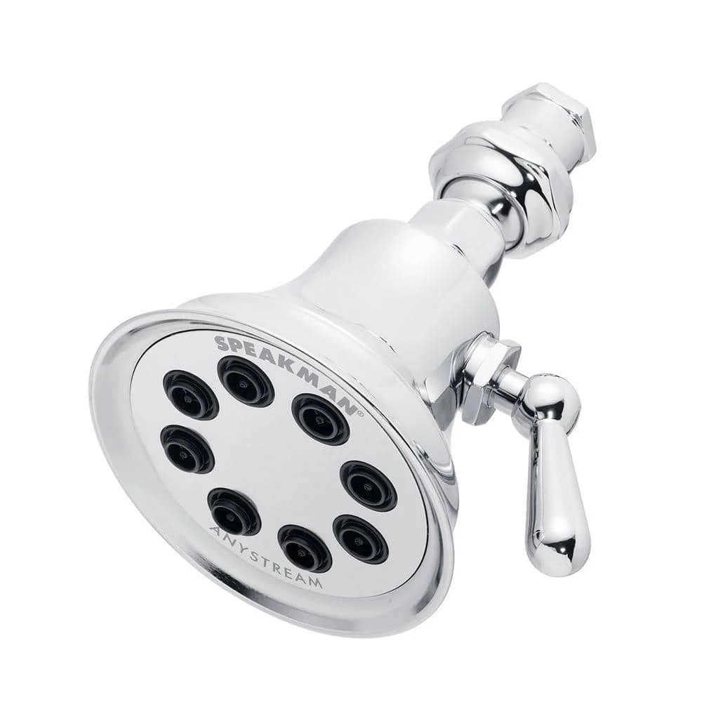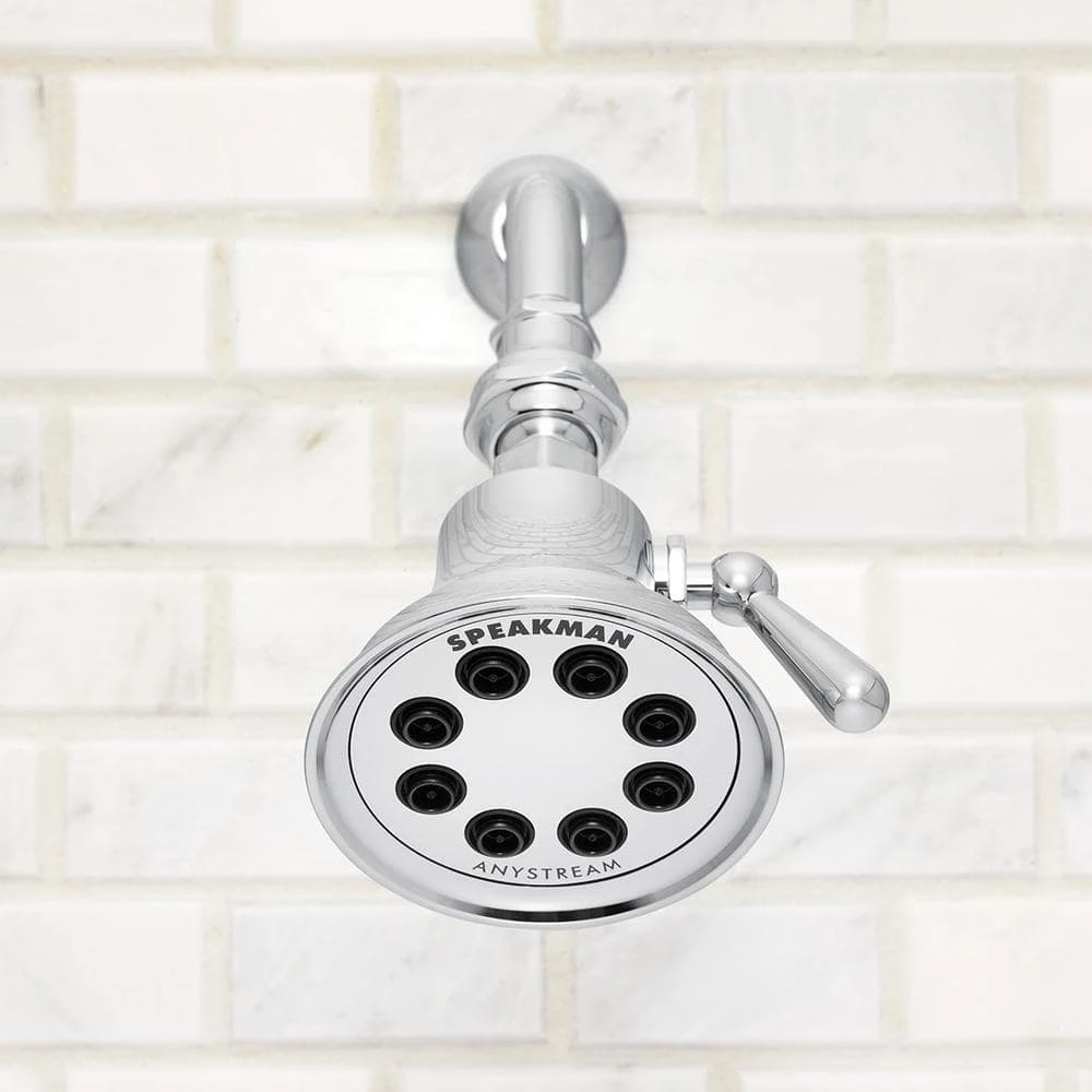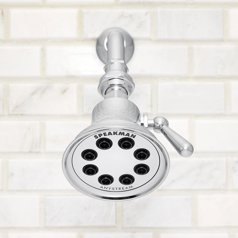 Because some things are worth repeating, Speakman Company introduces The Anystream Retro showerhead. The Speakman Anystream Retro was designed to reminisce the classic Speakman 4 in. self-cleaning showerhead from the 1920’s. This iconic showerhead, with solid brass construction, operates using the innovative Anystream 360° spray technology that made the classic showerhead so desirable. By adding a contemporary update to its traditional style, the Anystream Retro utilizes simple curves and lines that will appear striking in any modern bathroom. The Anystream Retro 64 Spray Showerhead showcases Speakman’s trademarked Anystream plunger nozzle system and pressure-compensating Autoflo limiter precisely control 8 jets and 64 spray channels, transforming low-flow water pressure into forceful, fully-adjustable sprays. Swivel the sculpted adjusting arm to transition effortlessly through needling full-body, rinsing gentle rain, and drenching full-flood sprays.