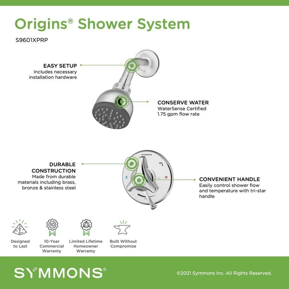 A combination of three core product lines, the Symmons Origins Collection combines high quality with fresh designs. This shower trim kit comes with a Temptrol Pressure Balancing Mixing Valve with the VersaFlex Integral Diverter and EasyService Stops. VersaFlex allows you to adjust the volume of water coming out of your showerhead, while the EasyService Stops let you shut off the water to your just your tub or shower without turning off the rest of the system. The tri star handle on this trim turns in the direction of the hot and cold indicators to adjust the water temperature in your shower. The secondary handle on the cover plate controls the volume of water coming from your showerhead. This kit comes with everything needed for installation. This shower escutcheon and handle shower trim set is durable and functional, and backed by a limited lifetime warranty and our technical support team.