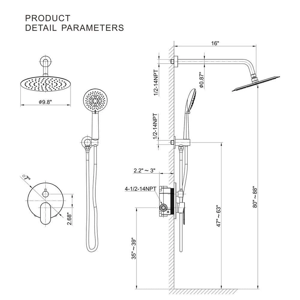 - DUAL FUNCTION SHOWER: Handshower and rain showerhead come together for a better shower experience and bring you more convenience & comfort