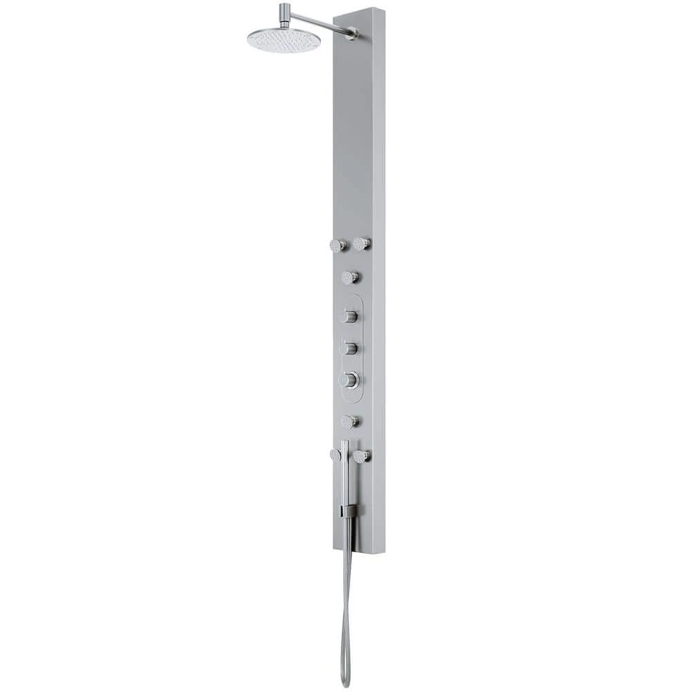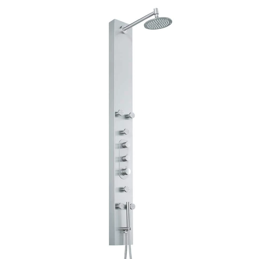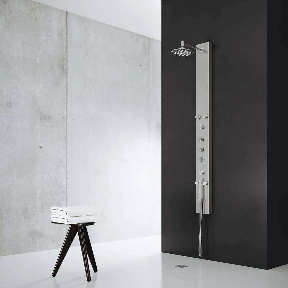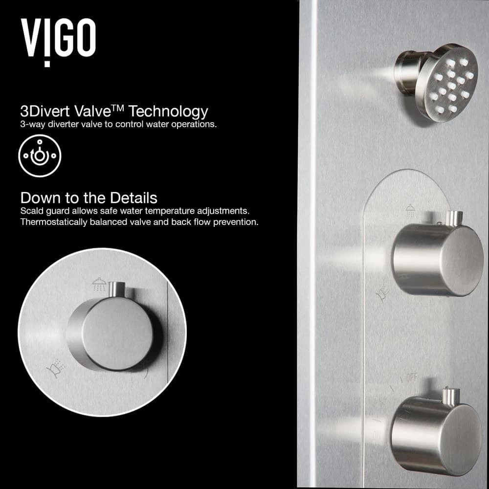 VIGO presents the Dilana Shower Massage Panel- an elegant shower system that gives you the ultimate spa experience. Dilana has a round rain showerhead and a hand shower with a stainless steel plated hose. It comes complete with six fully adjustable body spray massage jets and a hand shower for added convenience. A 3-way diverter valve works to deliver three separate shower settings for the shower head, jets and hand shower. The panel is constructed from solid stainless steel to be lightweight, durable, and corrosion-resistant. Bring superior functionality and elegance into your bathroom with Dilana Shower Massage Panel by VIGO.