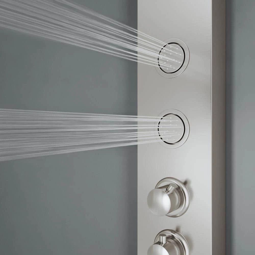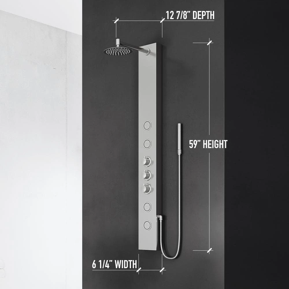 Self-care has never been so effortless and intuitive as with the VIGO Ellington Shower Panel. This shower unit brings targeted hydrotherapy to the forefront with its high-tech body spray massage jets. By addressing the body’s major pain points with 4-adjustable jet, therapeutic massage body sprayers, this system uses the power of water to ease tension, release stress and create a more soothing experience with every shower. The VIGO Ellington’s body and round rain showerhead are made from a lightweight yet durable stainless steel construction. The entire panel is coated in a 7-layer premium finish to resist rust, corrosion and tarnish. The panel includes a 3-Diverter Valve system that operates the water and temperature controls, as well as a separate hand-shower for additional specificity that extends 58 in. long. Step into something different with the VIGO Ellington.