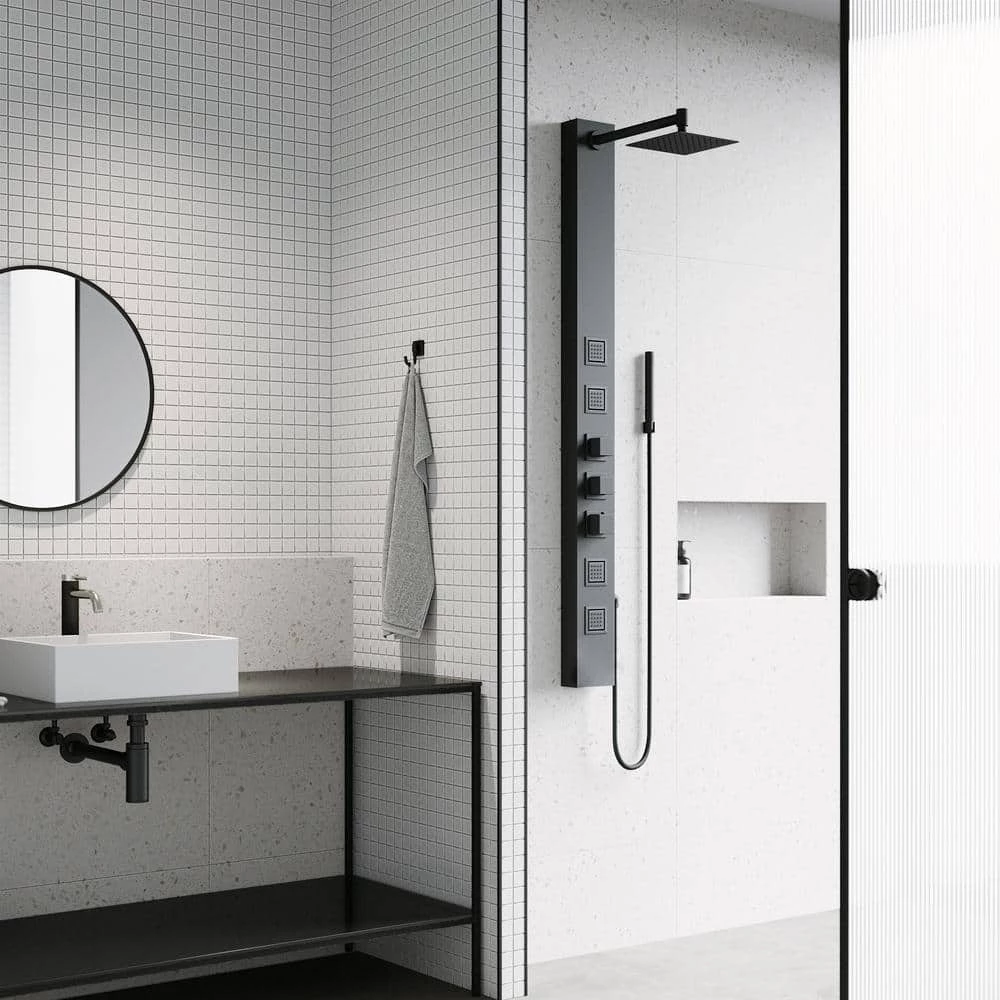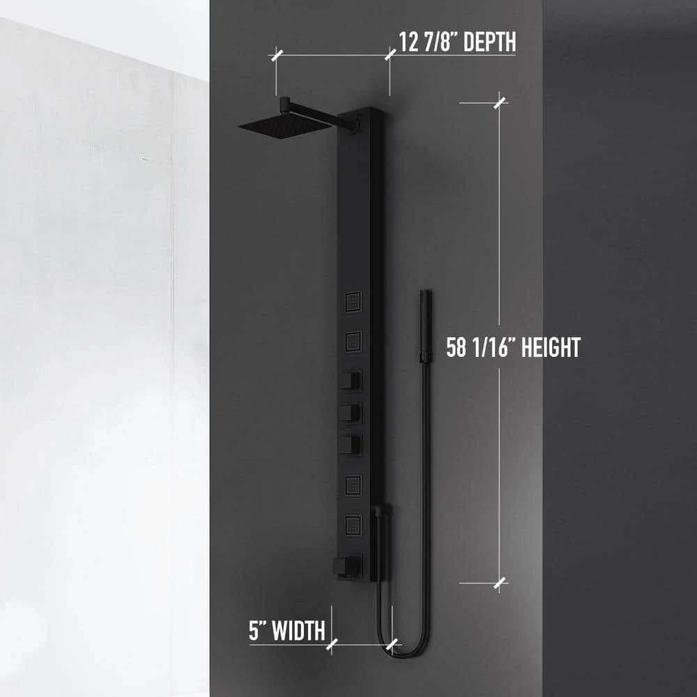 VIGO Sutton 58.0625 in. 4-Jet Shower Panel System with Square Shower head in Matte Black