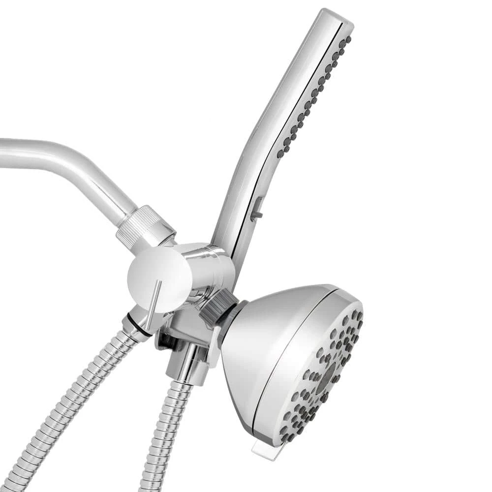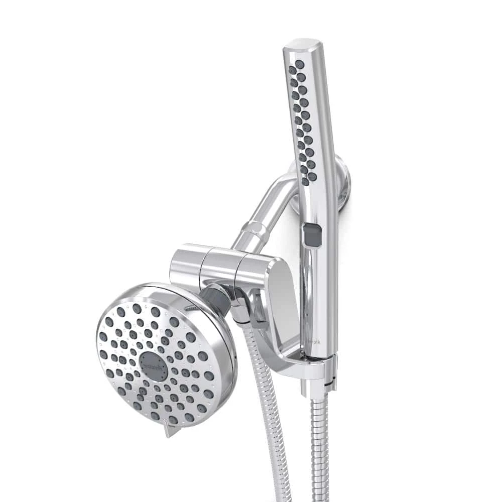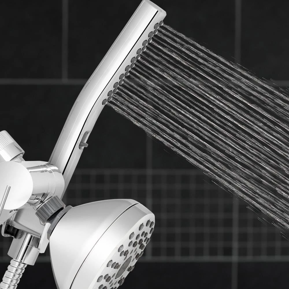 - Easy reach 3-way pivoting diverter conveniently holds the wand and allows you to switch from the shower wand, fixed shower head, or both