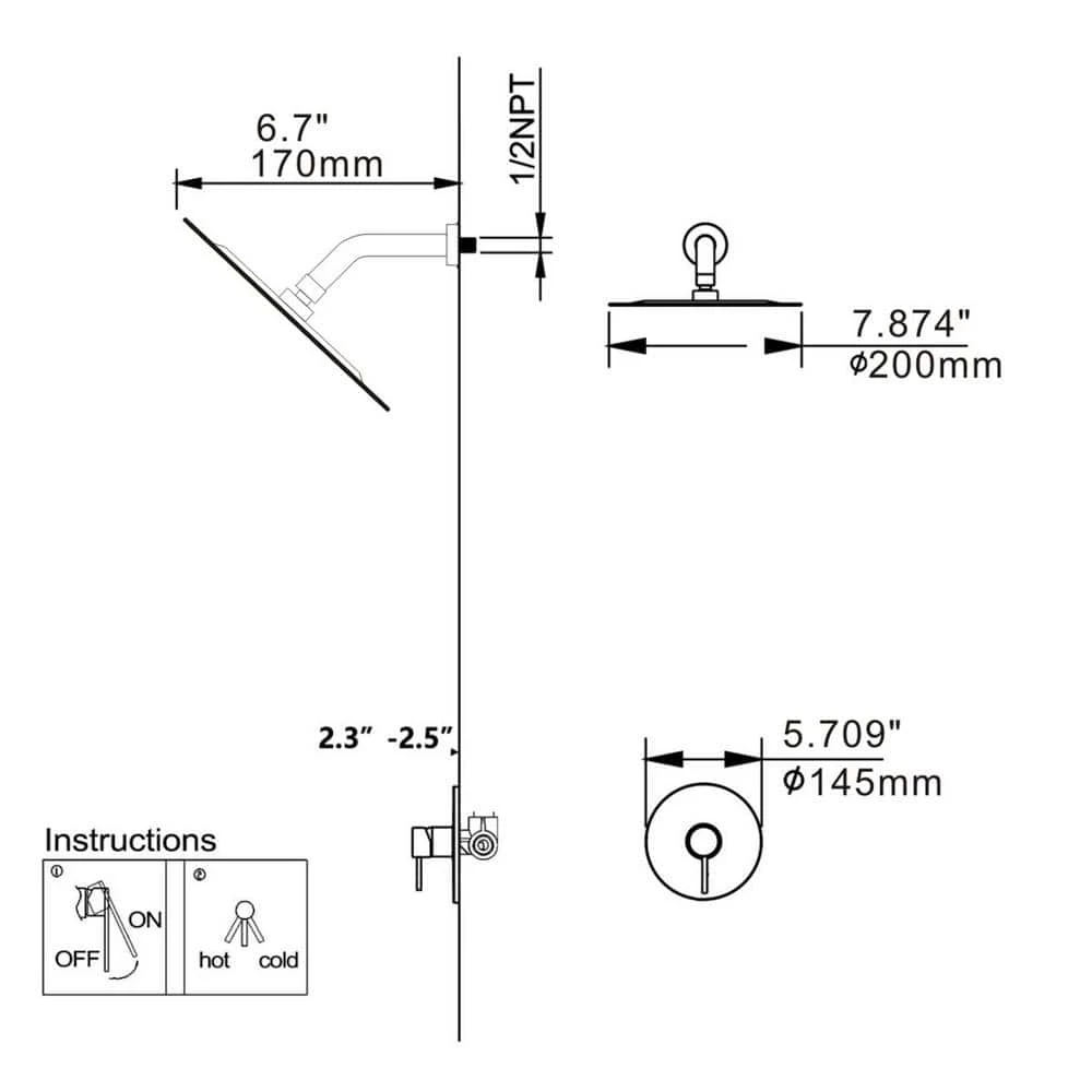 - Rain shower head and ceiling shower arm are made of 304 stainless steel