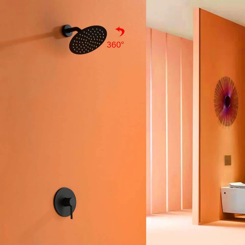 Matte black shower faucet with a rough-in valve has a modern design and an ample water flow of up to 1.5 GPM. With 1-handle level control, you can adjust the flow rate easily. Besides, the shower head is made of brass, which is durable for long-term use.