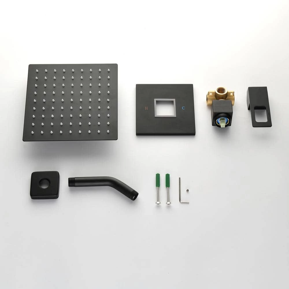 The shower faucet with a rough-in valve has a modern design and an ample water flow of up to 1.5 GPM. With 1-handle level control, you can adjust the flow rate easily. Besides, the shower head is made of brass, which is durable for long-term use.