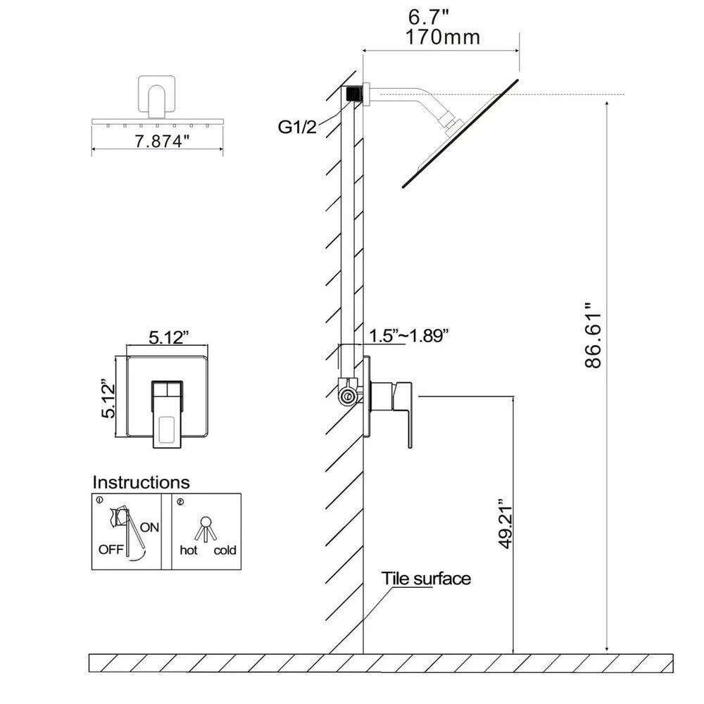 - Rain shower head and ceiling shower arm are made of 304 stainless steel