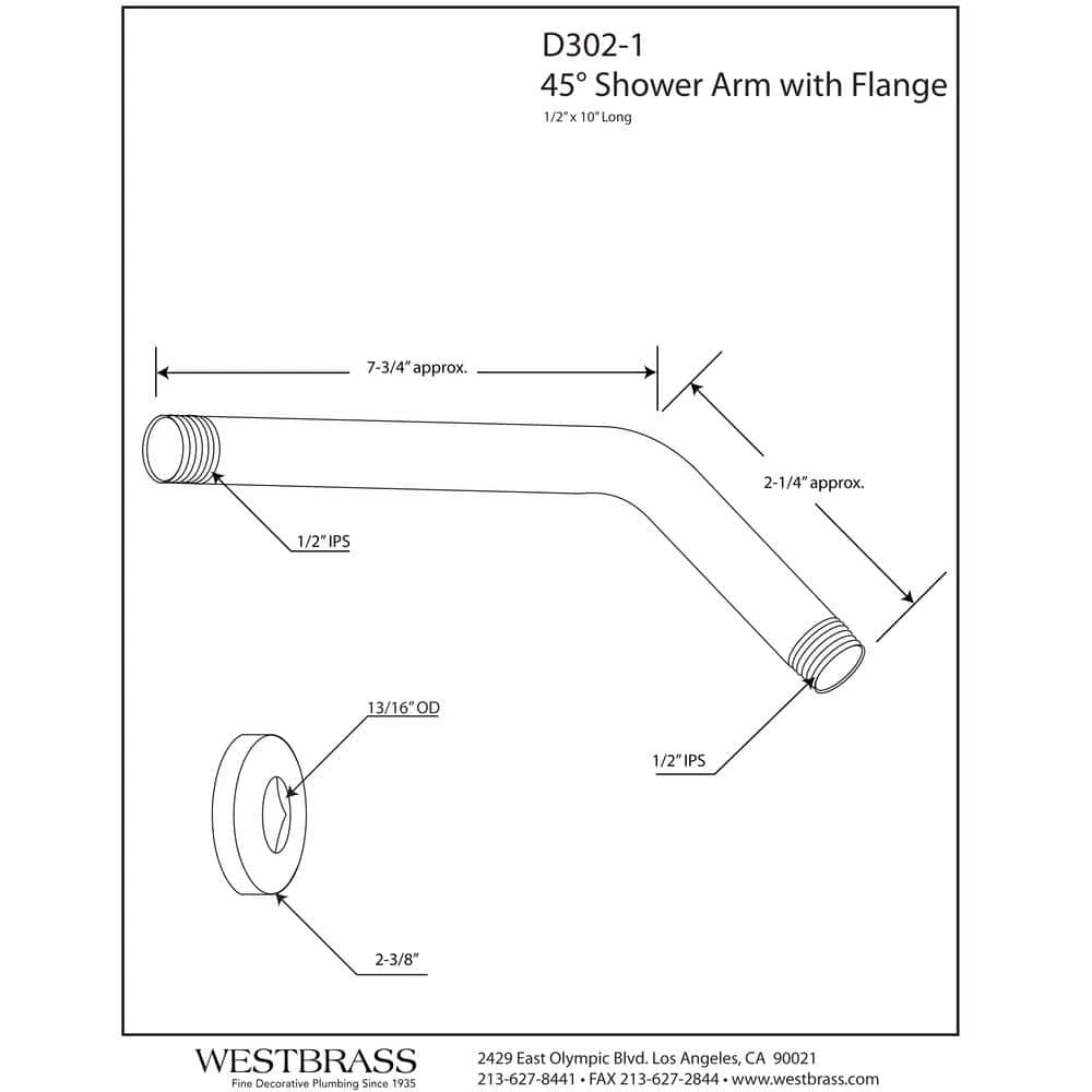 Designed to complete shower set-up. 1/2 in. IPS x 10 in. standard shower arm with flange. Designed to extend shower head into the bathing well for easy showering. Color matched in a variety of finishes to match existing decor.