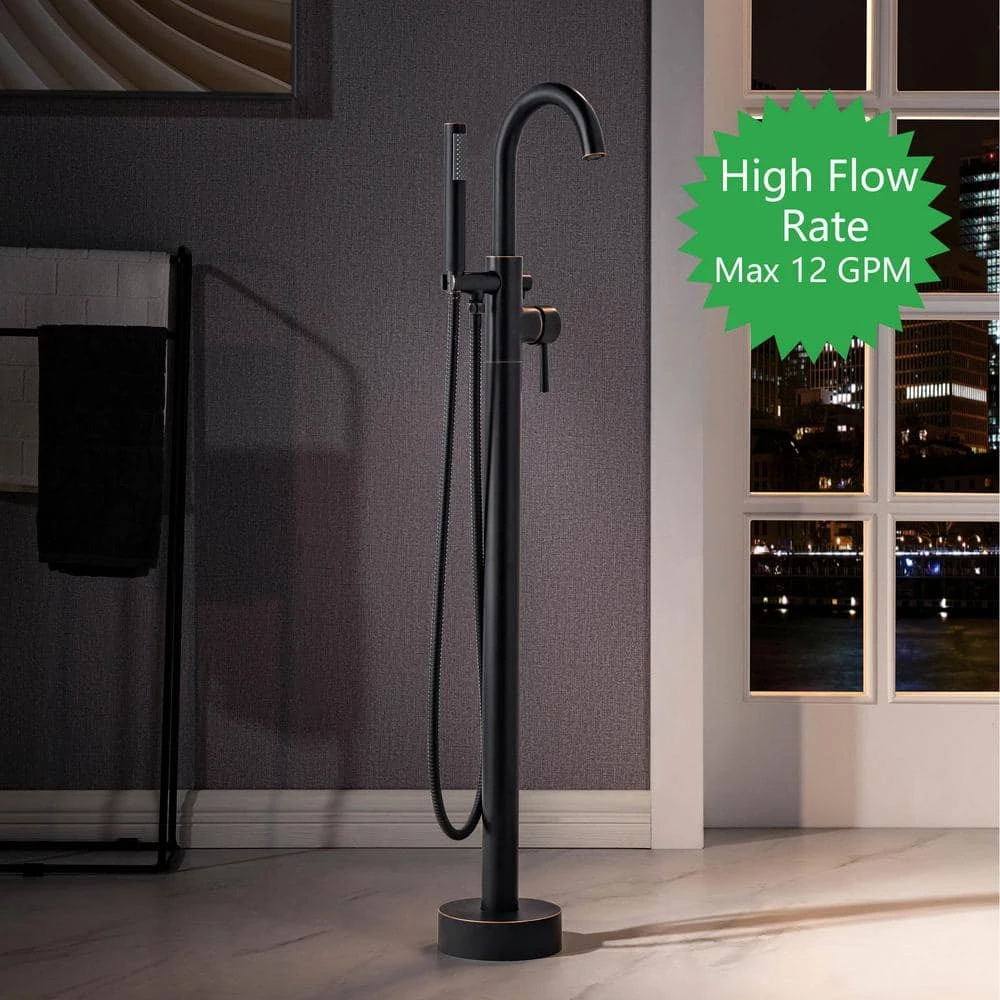 - [ DESIGN INSPIRATION ]: Quick freestanding mount to floor design with high and rigid tripod mounting bracket and hardware included. Easy operation single handle design allows flow rate and temperature control in single hand. High Arch 360 degree rotation swivel spout offers more room for bathing activities.