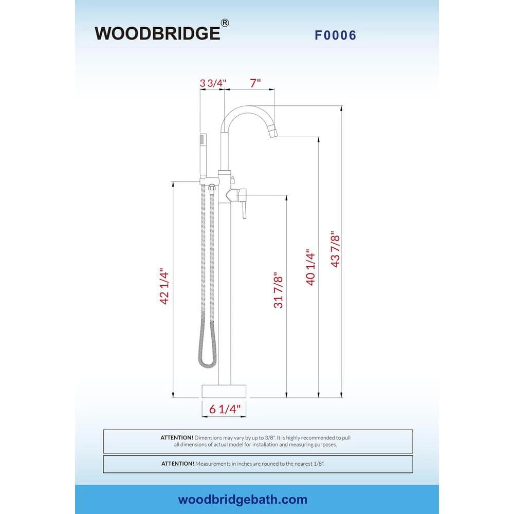- Package content: contain bathtub faucet (crafted from high quality brass), brass tube, hand shower with 59 in. double spiral stainless steel hose, 35 in. hot and cold water inlet hoses, metal tripod with mounting hardware, base cover and installation instruction