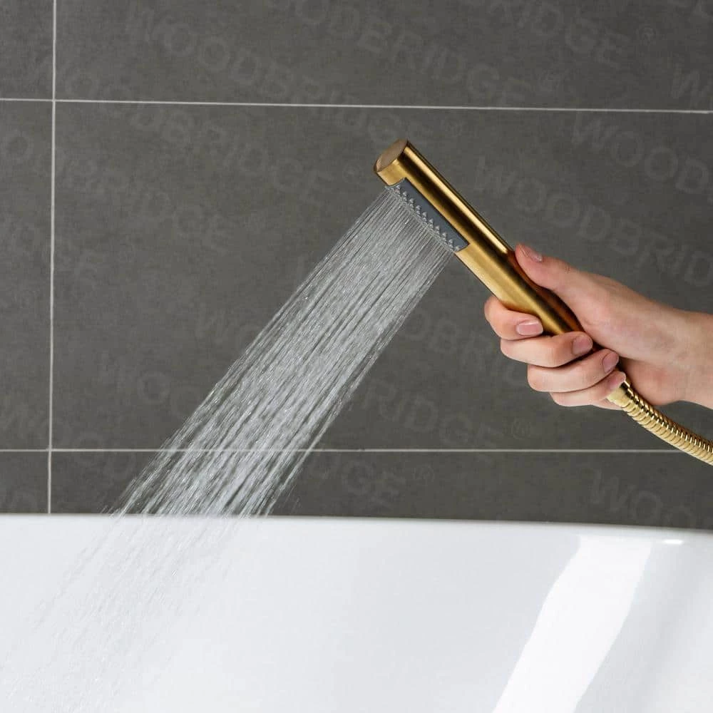 - Package content: contain bathtub faucet (crafted from high quality brass), brass tube, hand shower with 59 in. double spiral stainless steel hose, 35 in. hot and cold water inlet hoses, metal tripod with mounting hardware, base cover and installation instruction
