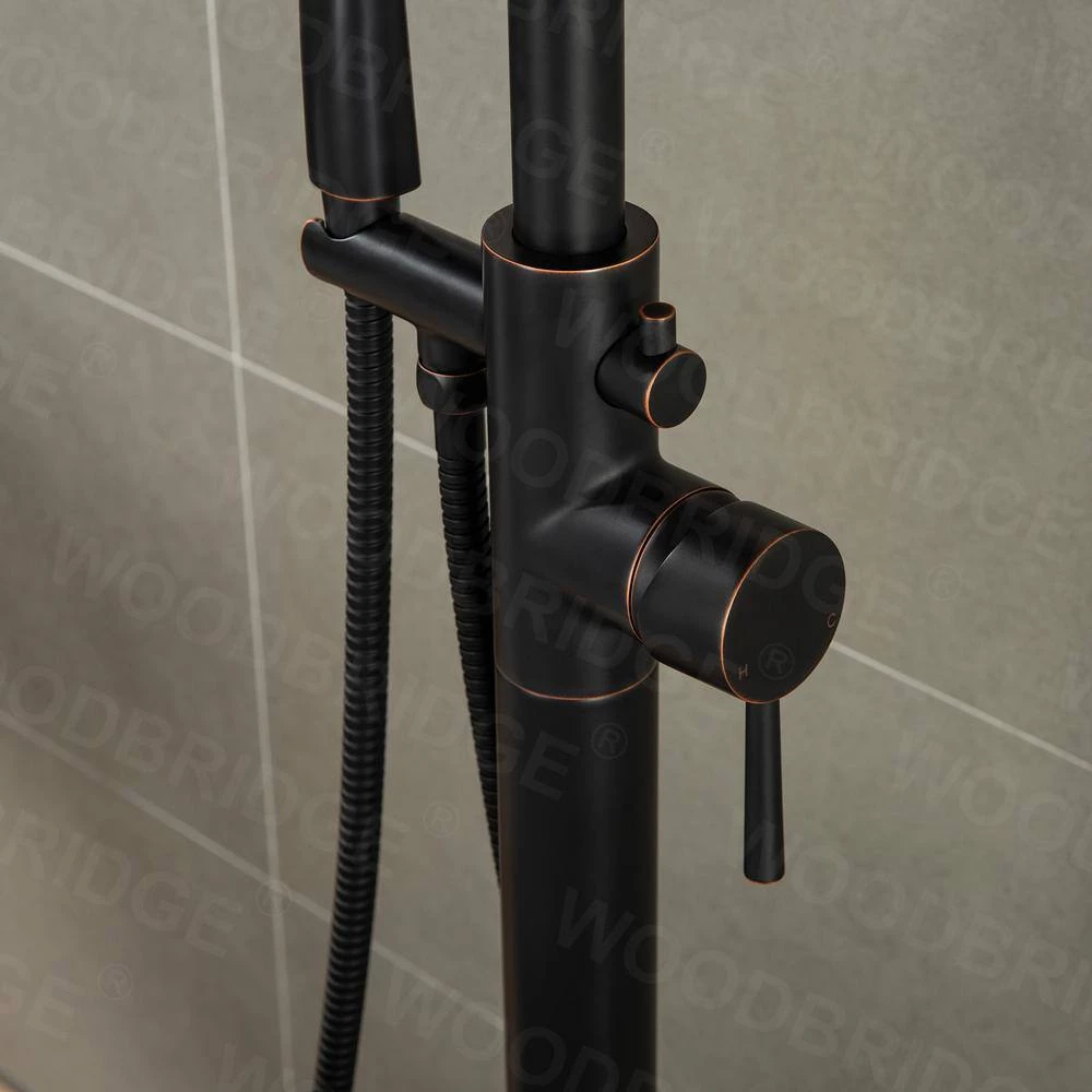 This contemporary freestanding tub filler faucet with hand shower is made from solid brass which is one of the most durable and reliable material that frequently used in plumbing industry better for hard water use and less likely to corrode or rust after years. Drip free ceramic disc cartridge with built in sediment filter; durable seals and ceramic shell prevent leaks and promote smooth operation and functionality for over 500,000 uses. It is more reliable and durable than any lower cost washerless or ball valve cartridge that widely used in plumbing industry. Single lever handle allows flow rate and temperature control in one hand. High quality NEOPERL aerator control the straightness and diameter of the water stream while reducing noise, splashing and side spray by aerating the water as it exists the faucet. Also they save water, reduce energy costs and filter sediments while meeting local plumbing code. Easy removal to clean any debris or mineral on screen after daily use and reuse it. The dual functionality of our detachable sprayer is the perfect tool for all your bathing needs including rinsing your hair, washing children or pets and also for keeping the tub clean after use. When finished, simply slip the sprayer back to its secure dock. Our high quality brass tripod base, which comes standard with expansion bolts for install on concrete, allows for easy and stable installation while seamlessly allowing for water supply to pass through.