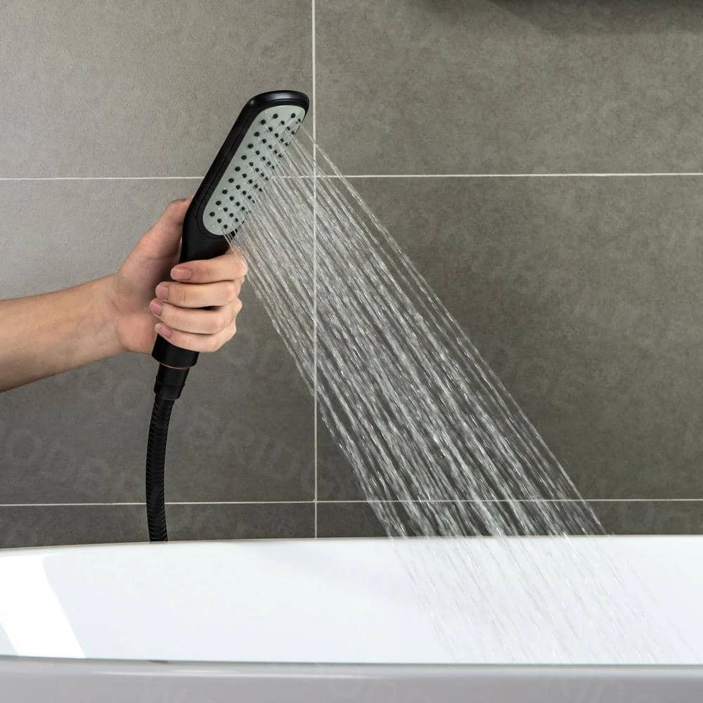 - [ HANDSHOWER AND HOSE]: Contemporary Square Hand Shower with Comfort Grip and a matching 59-inch double spiral stainless steel shower hose is great for rinsing off after a bath, hair washing, tub cleaning and washing pets.