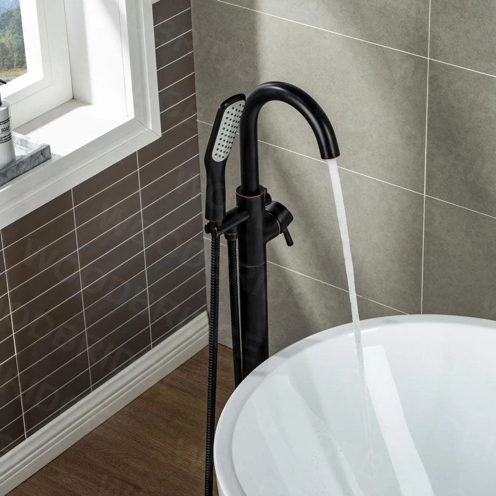 - [ DESIGN INSPIRATION ]: Quick freestanding mount to floor design with high and rigid tripod mounting bracket and hardware included. Easy operation single handle design allows flow rate and temperature control in single hand. High Arch 360 degree rotation swivel spout offers more room for bathing activities.