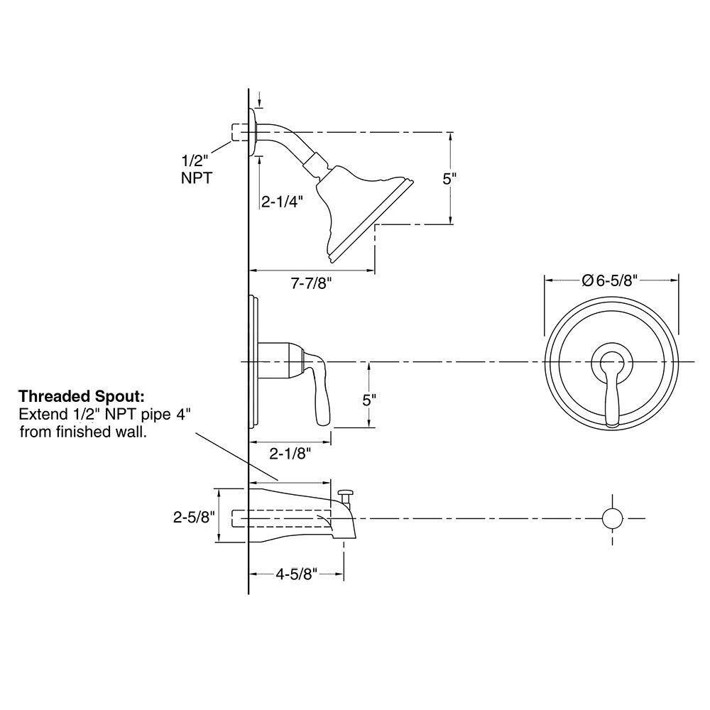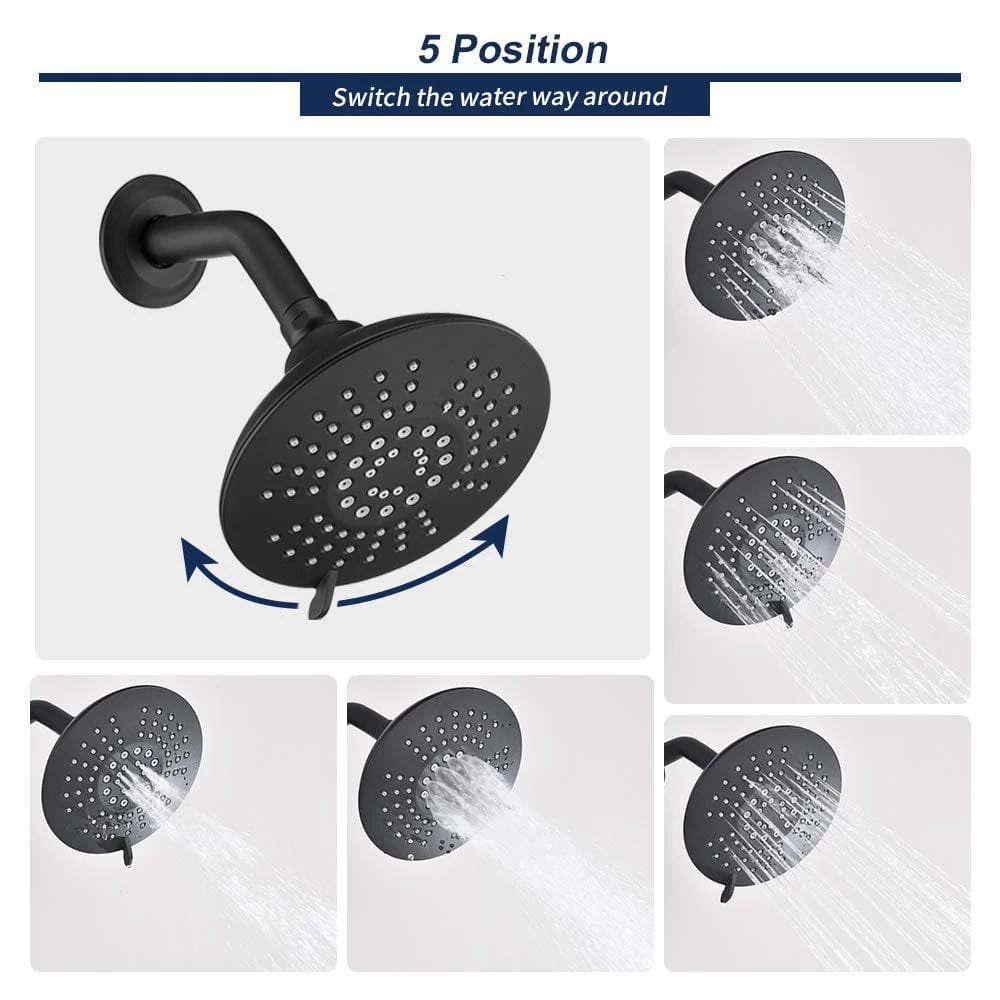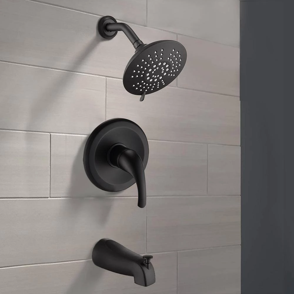 This shower contains a bathtub faucet and can also be used with the bathtub. Shower faucet has 6 in. round shower head, which includes 5 different spray types. Universal thread type: 1/2 in. NPT thread, USA standard.